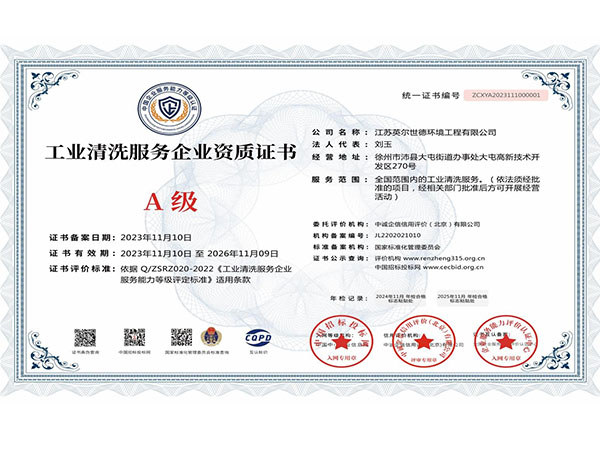 工业清洗服务企业资质证书