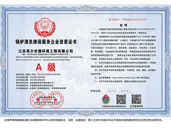 锅炉清洗维护服务企业资质证书