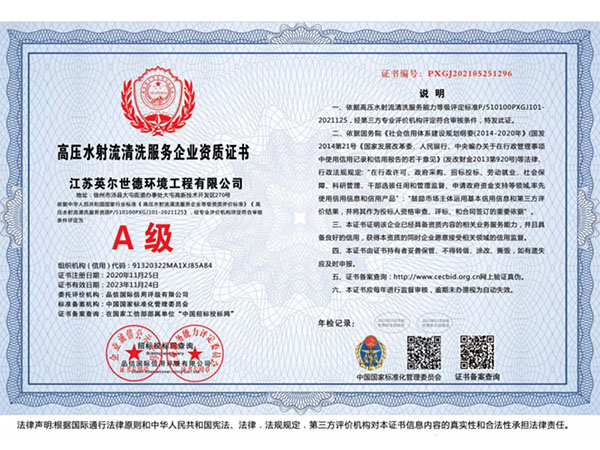 高压水射流清洗服务企业资质证书